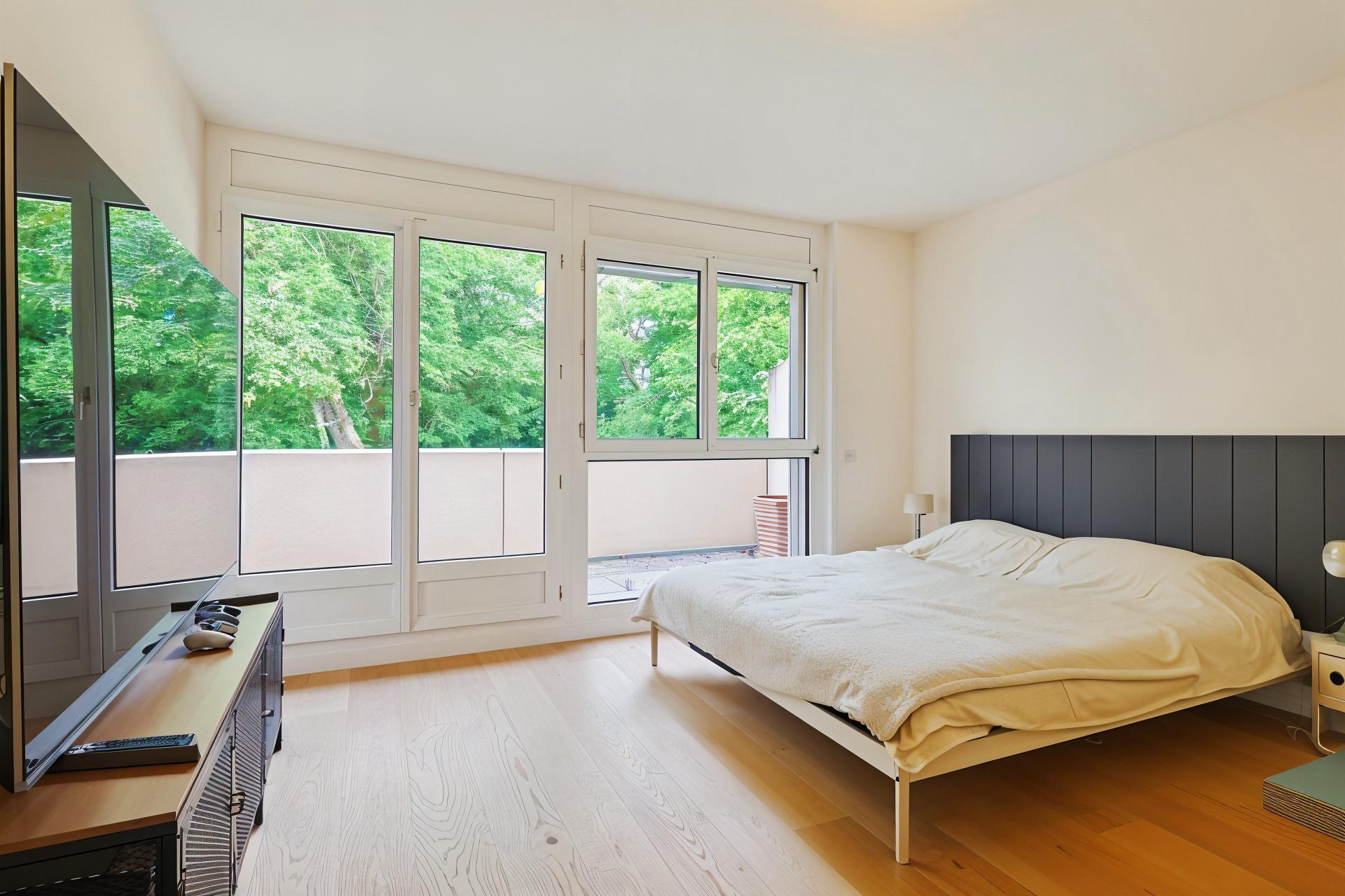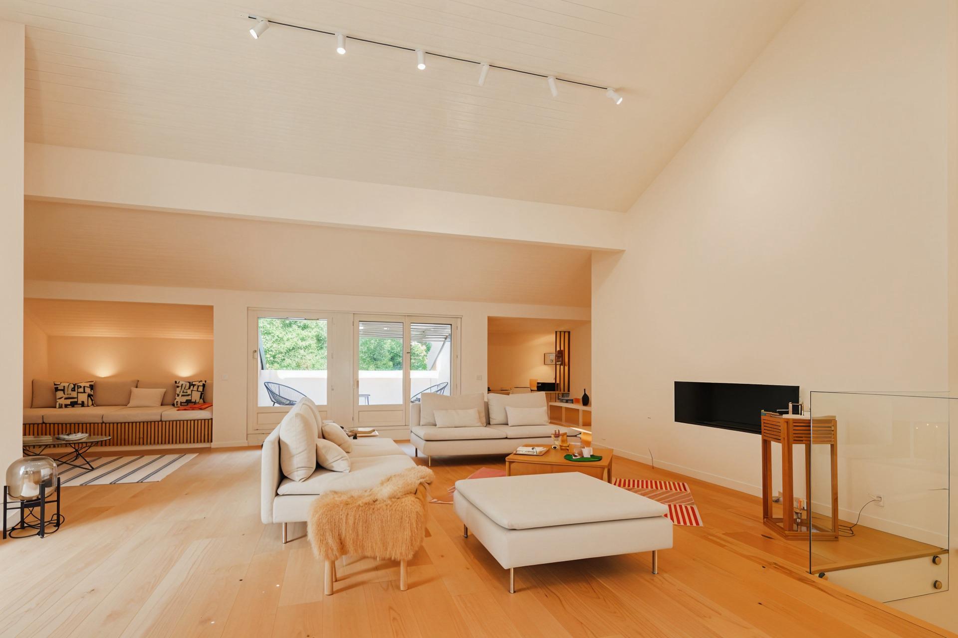 Located in the town of Chêne-Bougeries, close to public transport, international schools, shops and downtown Geneva, in a residence surrounded by green spaces, beautiful penthouse duplex of 5.5 rooms, completely renovated and modernized by a renowned interior design firm in 2023.