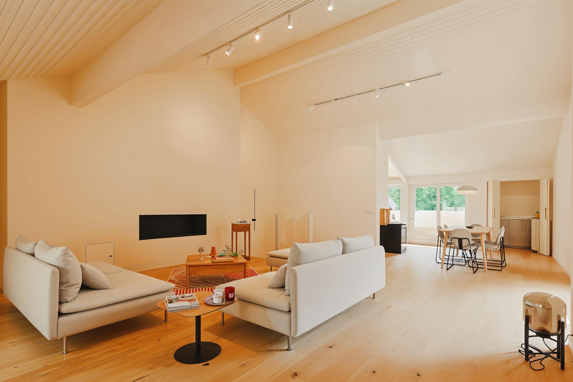 The second floor in attic, with a PPE surface of 99 m2, is bathed in light and has a TV lounge and a water vapor fireplace for long winter evenings. The kitchen is equipped with high-end materials. To take full advantage of the surrounding park, you have access to 2 terraces, one side dining room and the other living room.