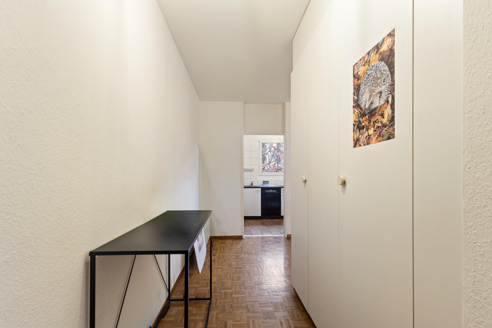 • Couloir avec armoire encastrée, offrant un espace de rangement appréciable